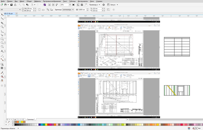 Затем проект перерисовываю в CorelDraw с соблюдением размеров удобных для импорта в Cinema4D. В основном это пункты или миллиметры. Все стены и элементы стропильной системы или обвязок рисую отдельно. Для лучшего понимания процесса моделирования (читай "строительства").