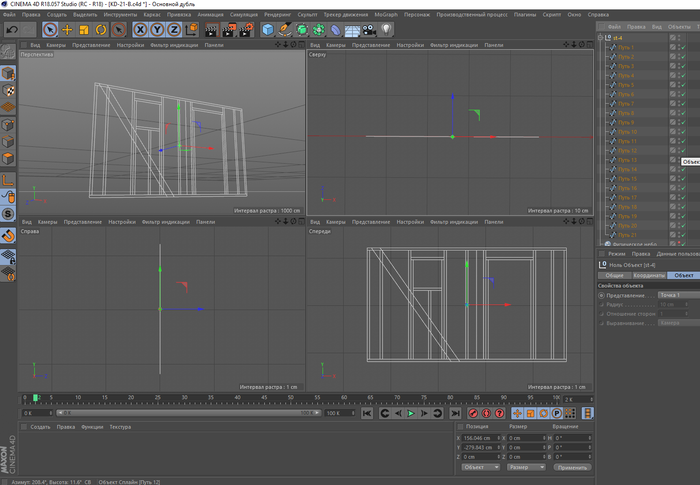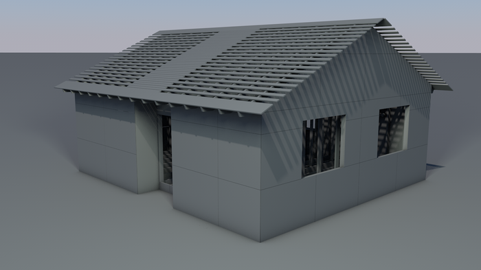 Проект сделан не полностью, дабы "сохранить интригу", но и этого достаточно для понимания того, как она построена и из чего сделана. И да, в дальнейшем я планирую выкладывать подобные проекты в Cinema4D в свободный доступ. На подходе проект одноэтажного дома, который гуглится по запросу "Каркасный дом Оклахома (КД-86)", дабы не сочли за рекламу.