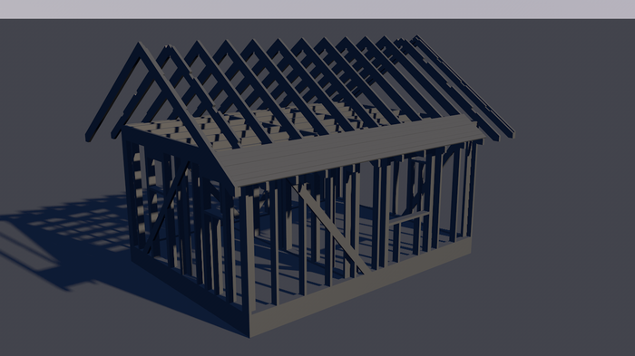 Затем добавляется еще стена, затем еще одна, затем стропила до тех пор, пока не получится готовый домик.