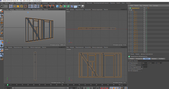 Каждый файл - отдельный элемент конструкции. Стены, настил, обвязки, ростверк, стропила. Все это для того, чтобы было удобно "выдавливать" это в синеме (о выдавливании чуть позже).