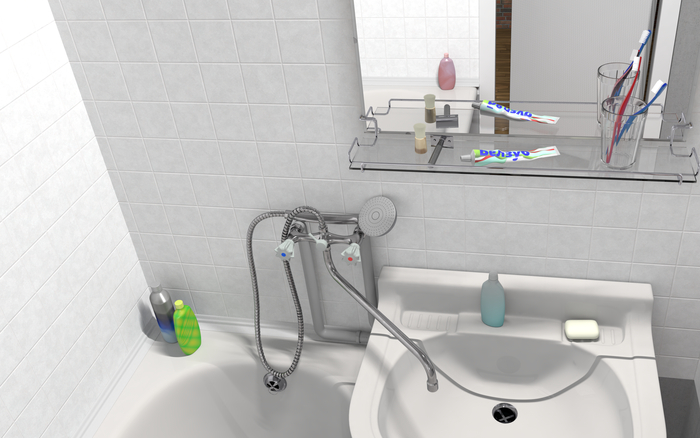 собрал небольшую сценку в cinema 4d, вам на потеху)