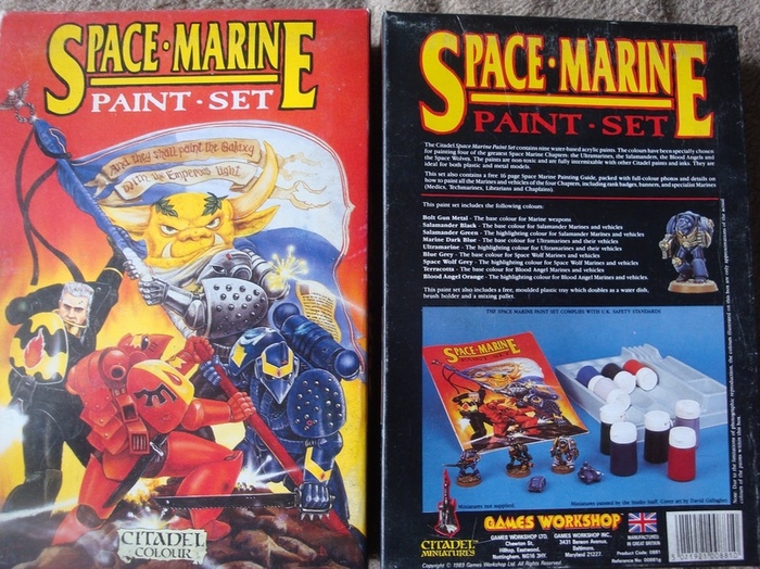Первым из этих новых наборов был набор красок для Космического Десанта. Этот набор содержал в себе цвета и оттенки, необходимые для четырех самых популярных орденов (Blood Angles, Salamanders, Ultramarines и Space Wolves).