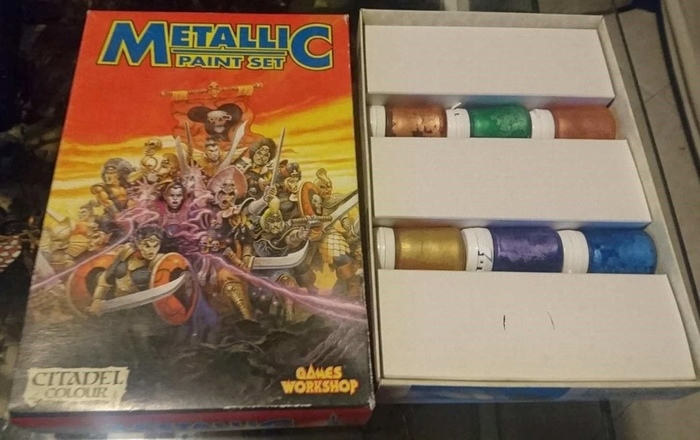 «Citadel Colour Paint Set» выпущенный в 1985 году стал самым первым набором красок от Citadel. Он представлял из себя сет из девяти наиболее часто использующихся моделистами цветов, но вместо того, чтобы придерживаться классических названий, таких как «красный» или «черный», было принято решение дать краскам более оригинальные названия, так и появились: Bronzed Flesh, Enchanted Blue, Sunburst Yellow, Mithril Silver, Shining Gold, Blood Red, Woodland Green и, конечно же, Skull White и Chaos Black. Эти цвета оставались основой красок Citadel в течение более чем двадцати лет.