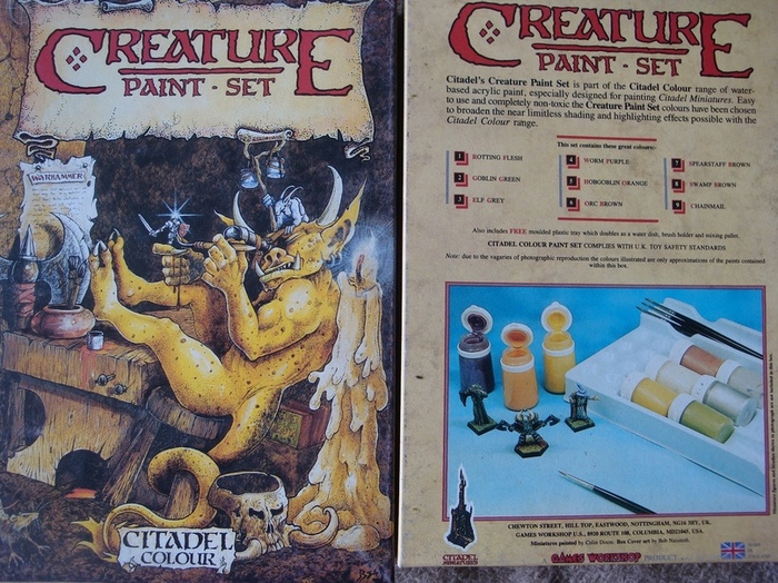 Согласно рекламе, «Creature Paint Set» был разработан, чтобы расширить возможности создания эффектов теней и хайлайтов. Он содержал такие цвета, как: Rotting Flesh, Goblin Green, Chainmail, Worm Purple, Elf Grey, Hobgoblin Orange, Orc Brown, Spearstaff Brown и Swamp Brown.