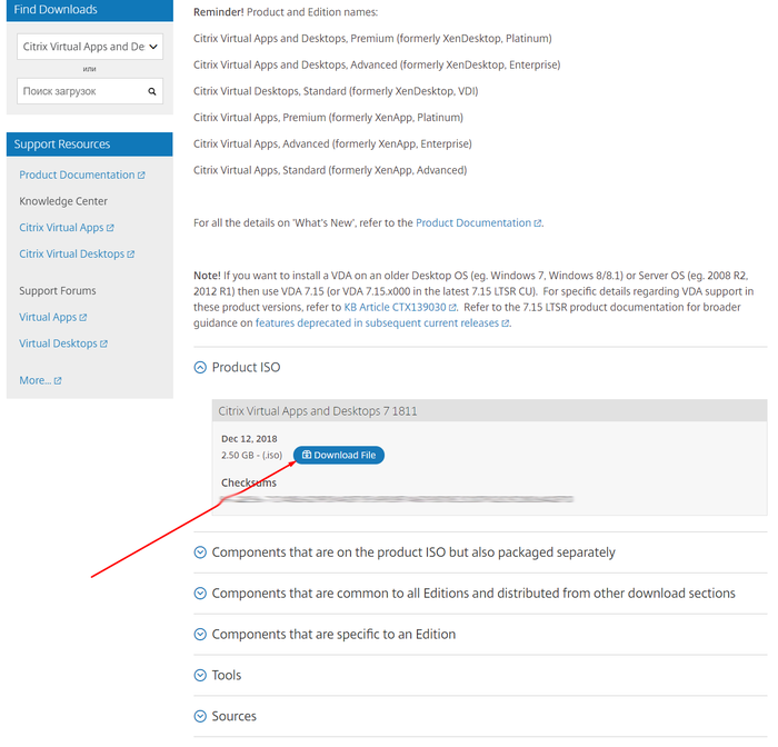 Скачаем Citrix Virtual Apps and Desktops 1811 на ws-dc.domain.ru. Ссылка для скачивания Citrix Virtual Apps and Desktops доступна, после авторизации на сайте Citrix.