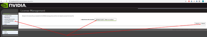 Используя браузер, авторизуемся в веб-интерфейсе менеджера лицензий NVIDIA, доступном по адресу http://localhost:8080/licserver и добавим файл лицензии.