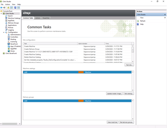 После настройки трех основных разделов, главное окно Citrix Studio будет выглядеть примерно так