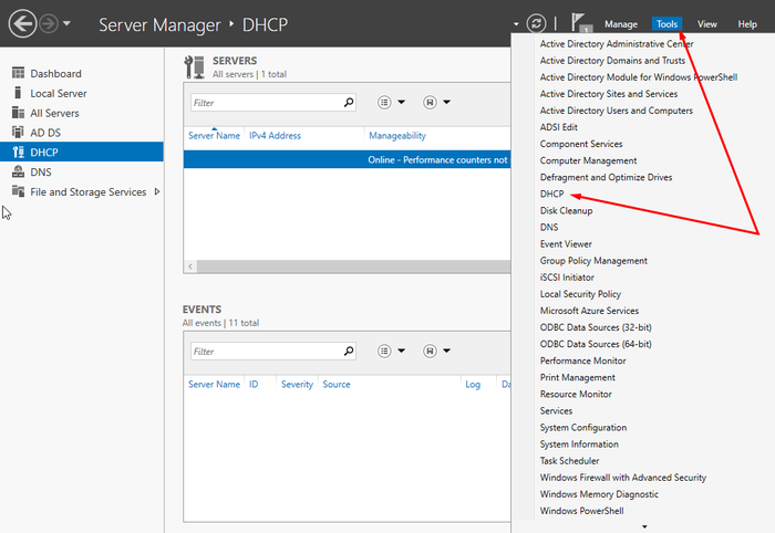 На верхней панели диспетчера серверов нажмем на восклицательный знак, чтобы сохранить изменения при установки DHCP сервера.