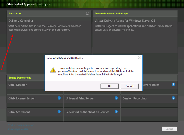 Смонтируем скаченный iso и запустим. Выберем «Citrix Virtual Apps and Desktops 7». Далее нажмем «Get started». Возможно потребуется перезагрузка.