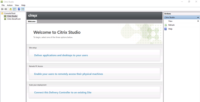Как только установка будет завершена запустится Citrix Studio — среда управления всем хозяйством Citrix.
