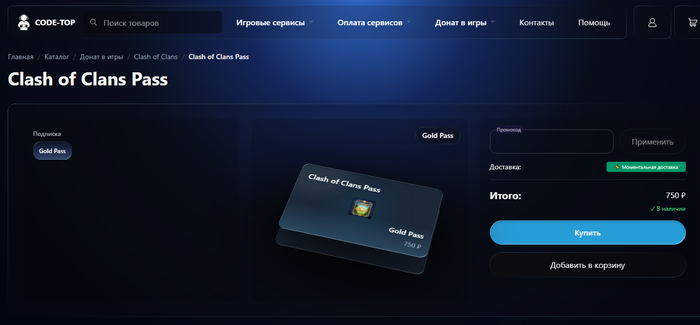Как купить золотой пропуск Clash of Clans через Code-top.shop: пошагово