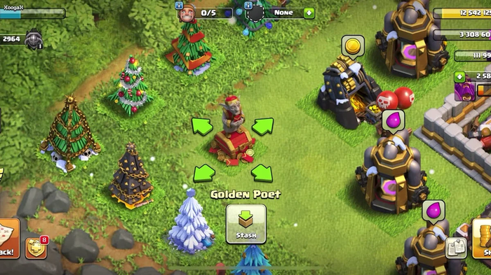 Тактика простая: если в пуле героев попался Гигант, то выставляем его ближе к краю платформы. За его спиной на расстоянии пары клеток, чтобы противник не смог убить героев одним АОЕ-заклинанием, ставим лучниц, гоблинов-копейщиков или других дешевых и эффективных юнитов с дальним типом атаки.