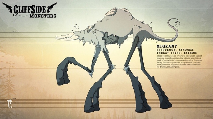 Во-вторых: сеттинг. Тут взяли нежно любимый братьями нашими меньшими, американцами, фронтир, и выкрутили его концепцию на максимум. Клиффсайд, который городок, на первый (очень первый) взгляд это такой типичный городок на Диком Западе, но он буквально окружён максимально негостеприимным миром. Инфернальные черти, монстры, хтоническое нечто или вернее будет даже сказать хтонические нечта (их много), и даже Смерть Собственной Персоной – что тут скажешь, городку приходится нелегко.