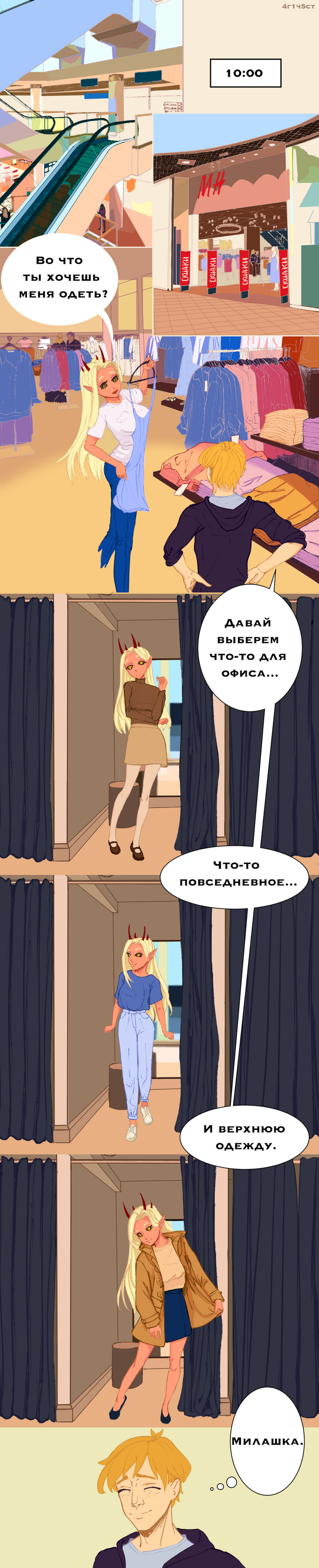 Ну вот, а то сколько можно ходить в шмотках Арта. Дома, конечно, можно ходить в шортиках и топике, но нам же на собеседование в следующей части. Кстати, в следующей части будет немного nsfw... так что подпишись, чтоб не пропустить.