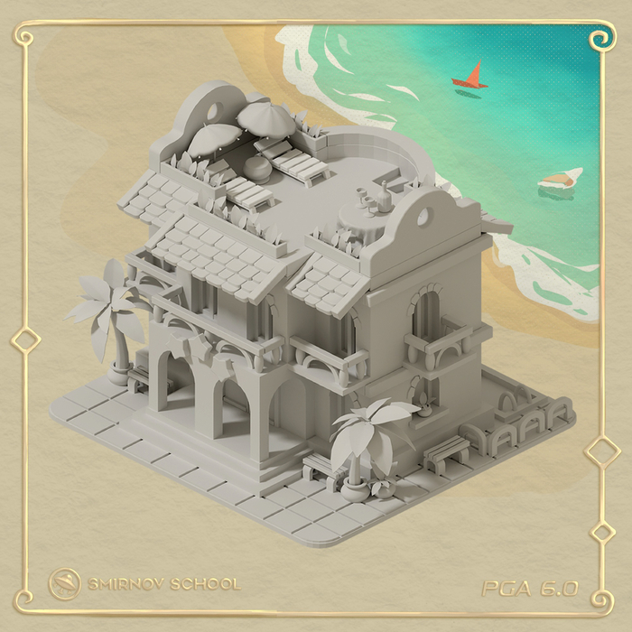 Этот проект был создан в рамках курса «Профессия игровой художник» в Smirnov School. В нём я разрабатывала архитектурные объекты с нуля — от первых набросков до финального рендера. Моей целью было передать не просто облик здания, а его душу — настроение и историю места, в которое хочется возвращаться снова и снова.
