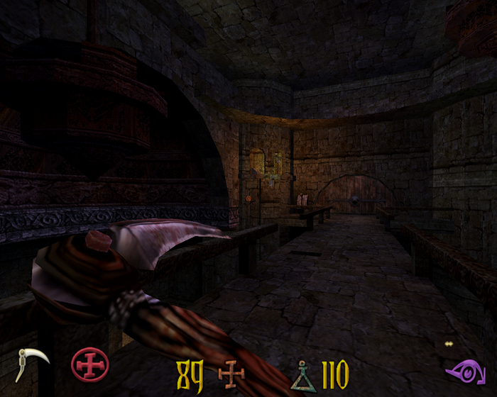Снизу обновленный вариант — Clive Barker’s Undying (СофтКлаб), разрешение 1920x1080, все настройки на MAX, 4x апскейл текстурный пак, текстурный мод Normal and Height Maps, DirectX11 Renderer, Widescreen Patch, текстурный мод Texture Updater, ReShade (HDR, CAS, SMAA, Clarity, EyeAdaption, AmbientLight)