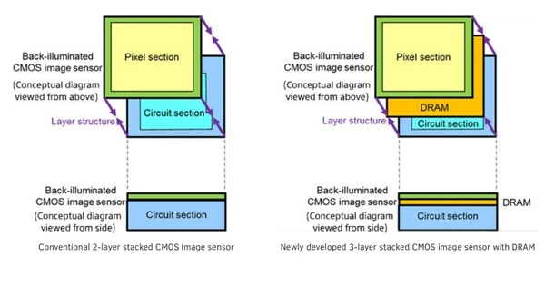 Иллюстрация, показывающая разницу между датчиками CMOS, BSI CMOS и Stacked CMOS. (Приведенные иллюстрации от Bob Al-Greene)