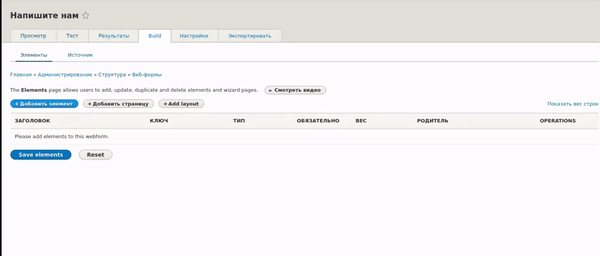 Нажимаем кнопку «Add webform» и пишем заголовок вебформы.