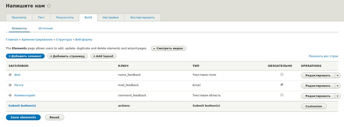 Сохраняем. Аналогично добавляем Почту и Комментарий, но вместо текстового поля — Email и Текстовая область соответственно.