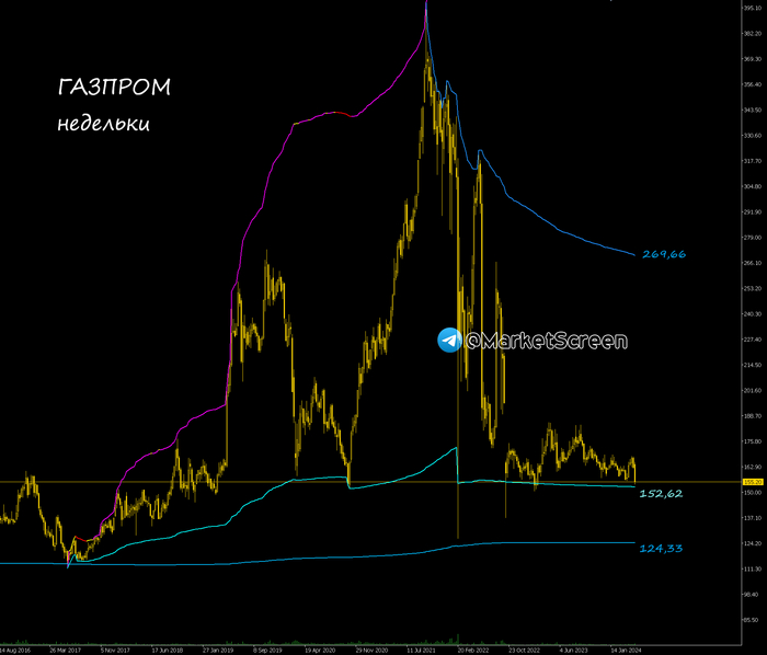 На совсем крайний случай имеем ещё одну VWAP на 124,33. Она совсем древняя - с октября 2008 года. А в итоге пойдем на 269. Газпром - один из самых недооценённых активов на отечественной бирже.