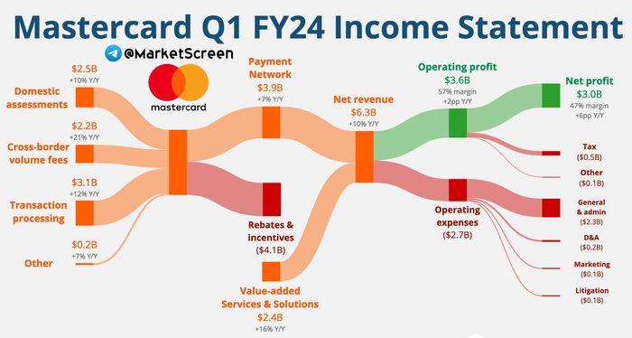 У мировых платежных систем всё в порядке. Выручка растёт по всем сегментам. Где-то больше, где-то меньше. Мир оправился после пандемии и трансграничные платежи выросли на 18%.