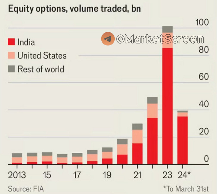 Объемы торгов опционами на акции в Индии, оказывается, в разы превышают таковые в США.