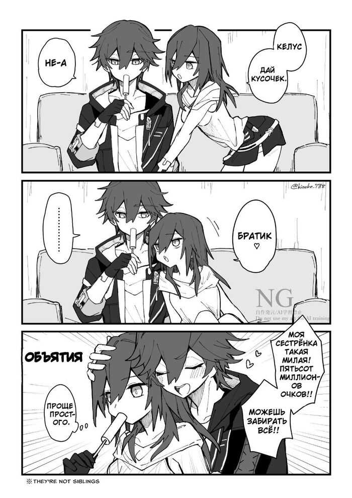 Пробует его мороженое