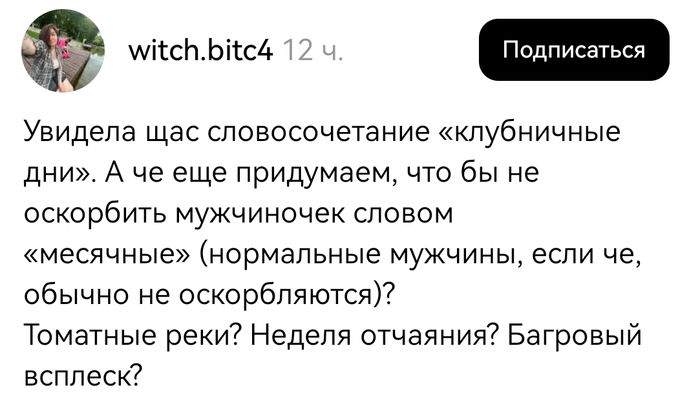 У нас на работе мужчина жаловался. Вышел из дома голодный, порвал карман у пальто, собачью шерсть на одежде не заметил впопыхах, а посторонние девки, сволочи, мимо ходили и даже не предложили перекусить и свою помощь. Знаете сколько таких набежало с воплями "девки перевелись"? А ведь они искренне верят в то, что им все кругом должны!