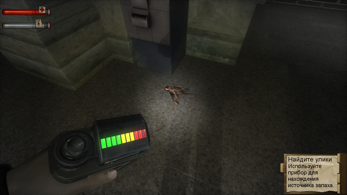 3. Геймплей первых минут: достань прибор, система выберет нужный, проведи прибором по столу или мертвецу, получи улики, а женщина на телефонном проводе даст тебе всю информацию и подсказки