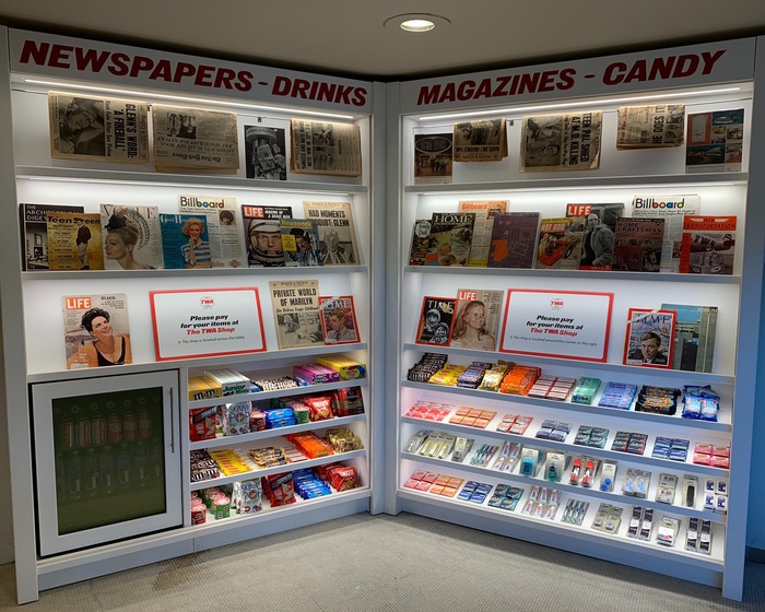 В отеле также открыт магазин сувениров, в котором можно приобрести интересные и брендированные вещи вроде халата для бассейна (69 долларов), многоразовая сумка (39 долларов), винтажные булавки для одежды (5 долларов) и специальные кроссовки Gola Mark Cox for TWA (65 долларов). Также в продаже есть и более банальные сувениры: пазлы, бутылки с водой, зонтики, свитера и бейсболки.