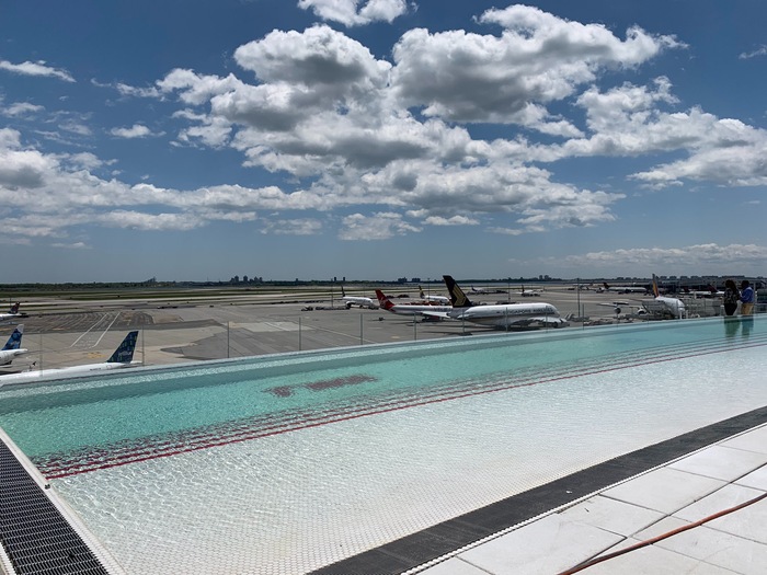 Вы также можете воспользоваться напитком в баре у бассейна с эффектом бесконечности, который выходит на взлетно-посадочную полосу аэропорта им. Кеннеди с любым дневным абонементом. Бассейн является одной из достопримечательностей аэропорта, которая будет привлекать авиационных гиков и споттеров со всего мира. Просто посмотрите фотографии ниже
