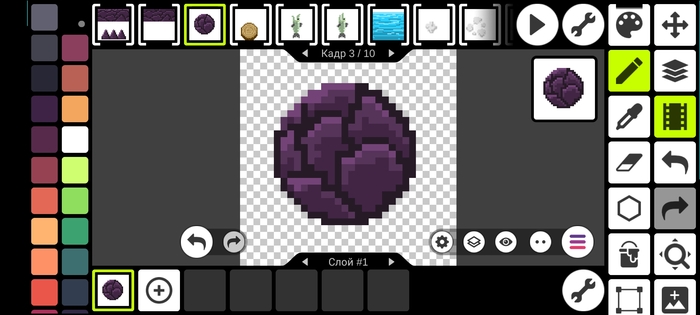Весь пиксель арт рисовал на телефоне, в поездках, в очередях, а когда приходил домой подгружал в игру. Так как я не видел общей картины- есть разнобой в размерах и цветовой гамме элементов игры, но брать готовые паки графики мне не хотелось. Это совсем не фаново.