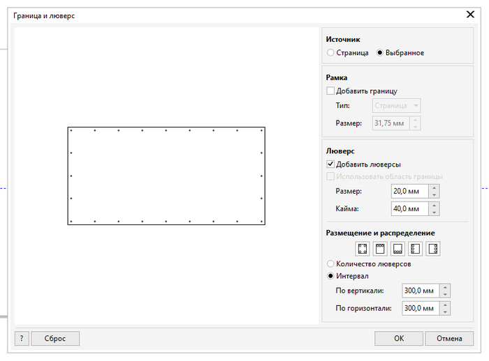 Напоминаю, что инструмент расстановки люверсов находится прямо в кореле. Даже ничего качать не надо.