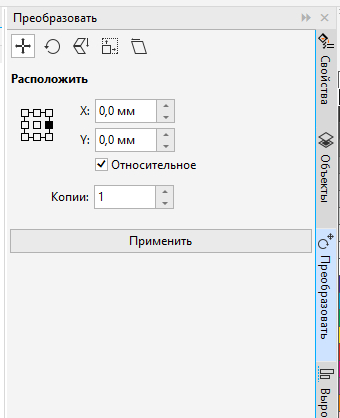 Преобразовать. Перевод странный, по сути копирование с отступом. Поворот, зеркало, смещение опционально. Удобно для компановок.