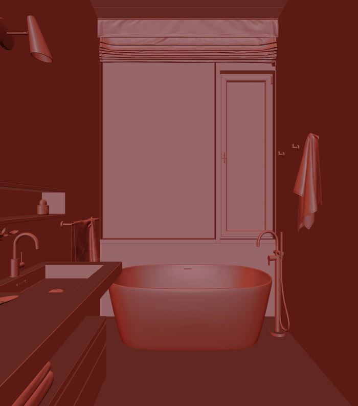 Недавно был пост Ванная в белом и визуально она мне очень понравилась, захотелось попробовать повторить её в 3d. Вот что у меня вышло: