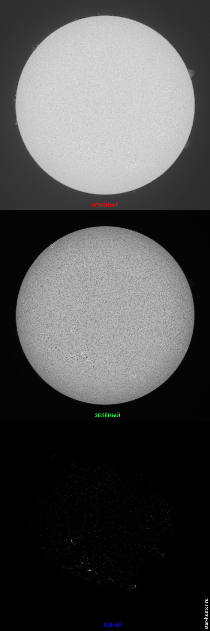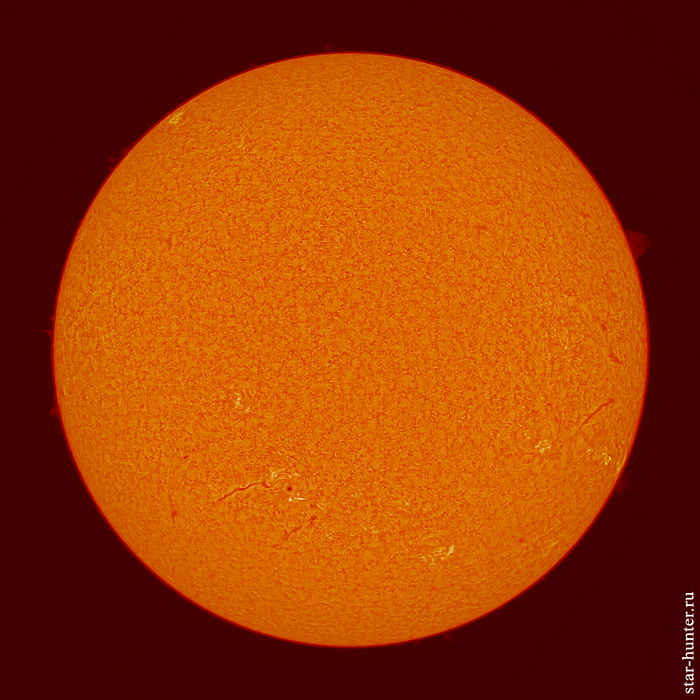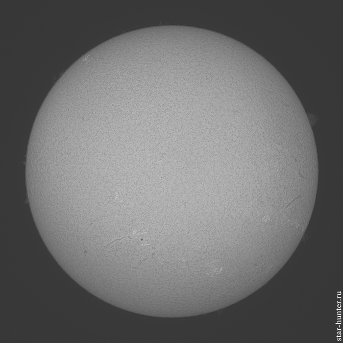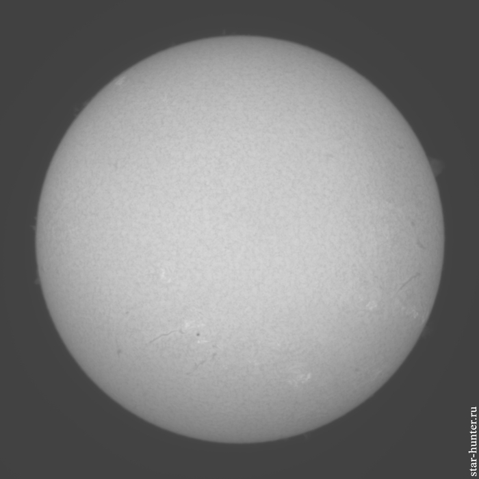 P.S. Цвет, разумеется, не настоящий. В Coronado все было видно красным, а после сложения в Autostakkert - черно-белое.