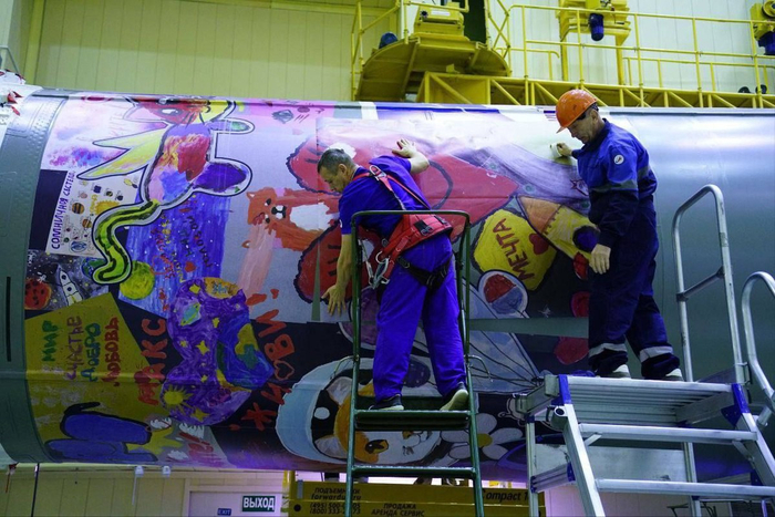 Впервые на ракету-носитель «Союз МС-28» нанесли детские рисунки, их авторы — пациенты онкологических центров со всей России