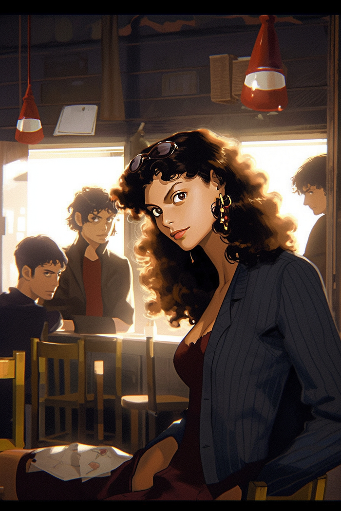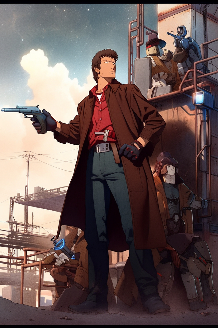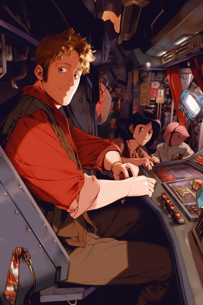 Решил погенерировать в Midjourney персонажей из сериала "Светлячок" в стиле аниме "Ковбой Бибоп". Использовал следующий промпт к ссылке на изображение: 80s anime still, retro, by Toshihiro Kawamoto --ar 2:3 --niji 5