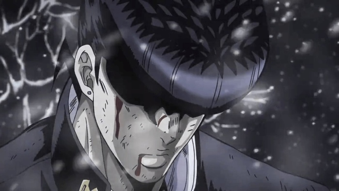 И вот я уже смотрю финальные серии 4 сезона. В один момент Джоске получает рану на лице от атаки Киры. Эту рану я сразу же узнал. Ведь точно точно такая же рана с кровью была у незнакомца спасшего его в детстве!