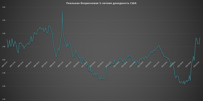 Делаем пункт 1 минус пункт 2 и получаем реальную безрисковую ставку для США с 2003 года (если проделывать такой фокус с 10 летками, то можно получить историю с 1970-ых годов).
