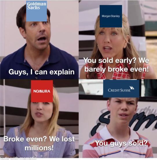 В итоге Archegos Capital обанкротился под ноль, Goldman Sachs и Morgan Stanley вышли из щекотливой ситуации без особых потерь, японский банк Nomura понес небольшие убытки, а вот Credit Suisse потерял на этом всём пяток миллиардов долларов.