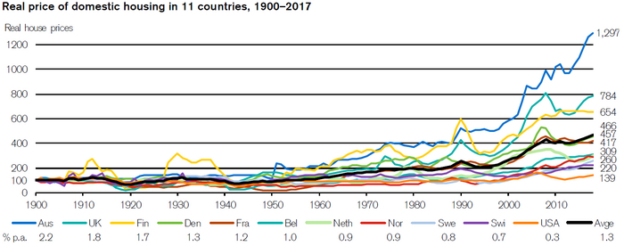 Так и есть, историческая доходность недвижимости по странам сверх инфляции 1.3% годовых. Нигде результат не был отрицательным.