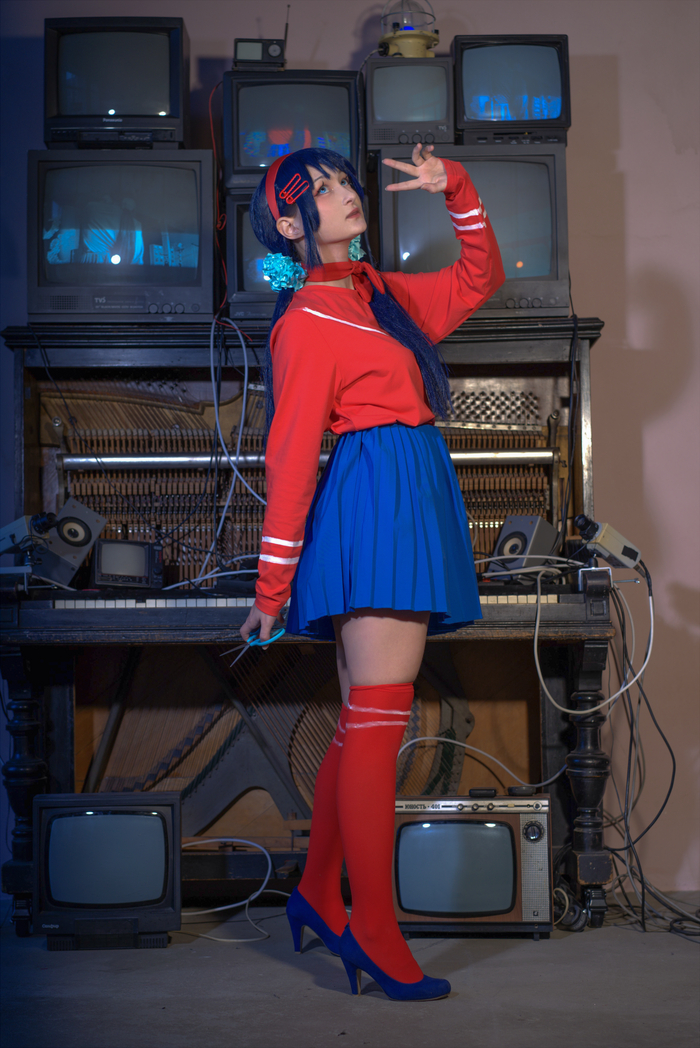 Бледная кожа, общий болезненный вид, фиолетовые волосы, стилистически подходящий наряд, и что глвное, цветочек на голове. Так же звух при переходе в фоторежим похож на некоторые фрагменты треков Sewersvt.