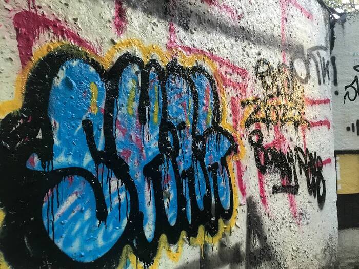 примерно летом 2022 года мой прошлый друг втянул меня в граффити культуру и хипхоп культуру. он тегал за нас двоих, а я тренился на бумаге. ближе к зиме того же года, мы начали подходить к простеньким флопам и даже кускам. к тому времени я уже мог самостоятельно тегать и помогать при какой-нибудб заливке.
