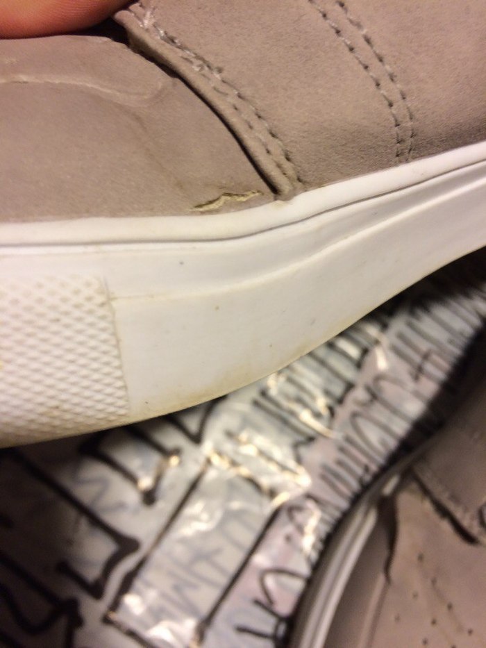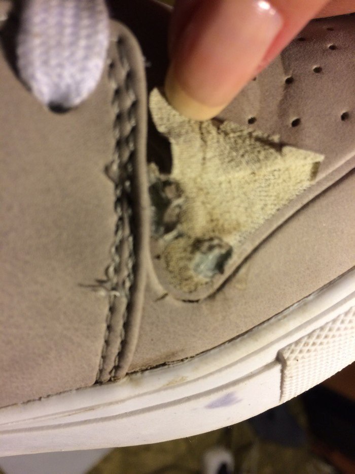 На обоих кроссовках заметно расслоение верхней части от подошвы: