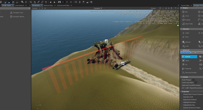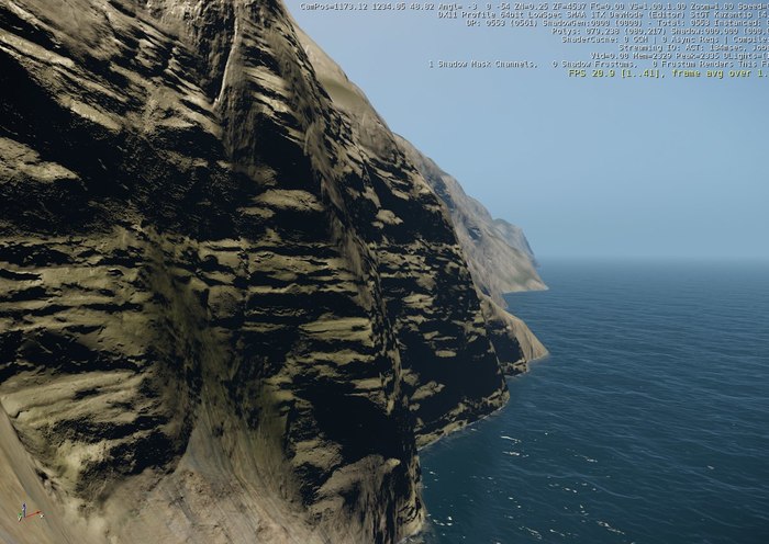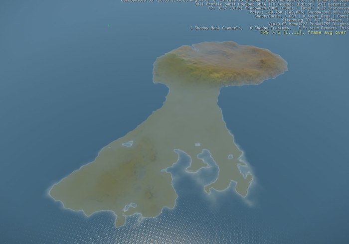 -По локации буквально сегодня принято такое решение : Поверхность турбосмув 500 тыс. полигонов без учета лагерей и архитектуры на поверхности и сверху левел дизайнер будет шлепать клифы (геометрические объекты), прикрывая образовавшиеся дырки и оставшиеся углы.Поверхность сейчас состоит примерно из 70 кусков по ~7к-9к