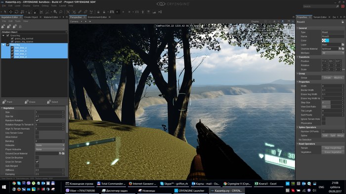 Локацию делал в натуральную величину, потому масштабы были ой-ой-ой какие большие. Движок (CryEngeine) очень сильно напрягался, когда я все в него впихивал :-)