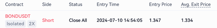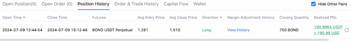 Итого был открыт лонг на 750 токенов на MEXC при средней цене входа 1,281$.