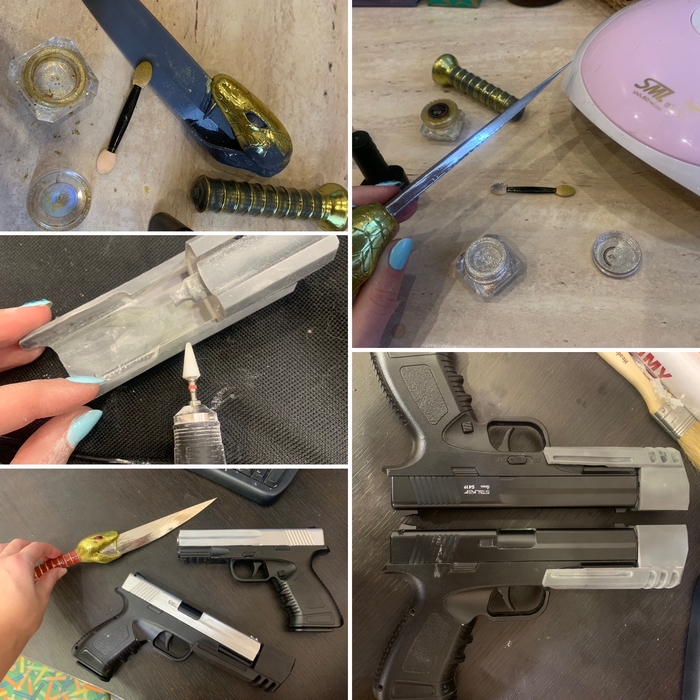 И двойные пистолеты, ну куда без них. На пистолеты надеты распечатанные на 3D принтере компенсаторы)