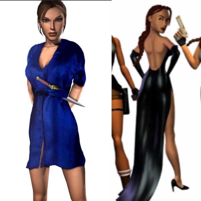 Я взяла образы в синем халате из Tomb Raider II, вечернем платье из Tomb Raider: Chronicles, бикини из Tomb Raider: Legend, черную майку и шорты из фильма. Кинжал и пистолеты во время и после обработки выглядели вот так: